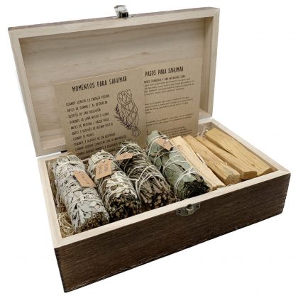 – Atado de Salvia Blanca Californiana (10/11cm, 28/30gr aprox ): Desde la antigüedad es usada para atraer a nuestros seres de amor para que acudan en nuestra ayuda, nos alejen de las vibras negativas y nos limpien los chakras. Puede ser usada a diario por toda nuestra casa para ahuyentar las energías negativas. Además quemar salvia purifica el aire.